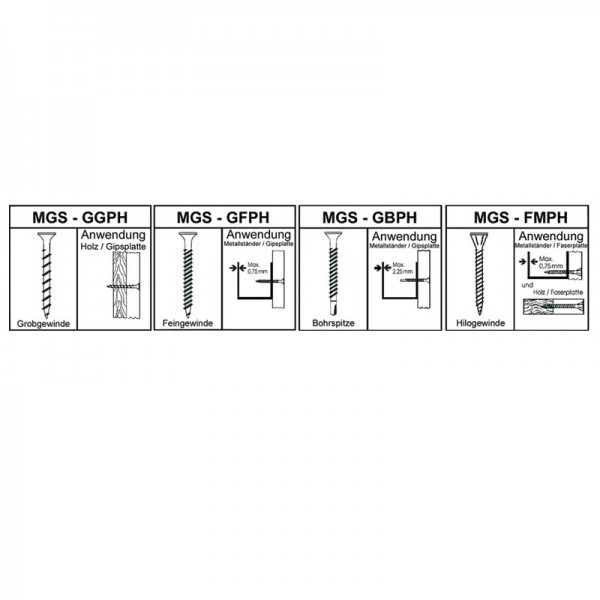 Schrauben entsprechen den Anforderungen der DIN 18182-2:2010-02.